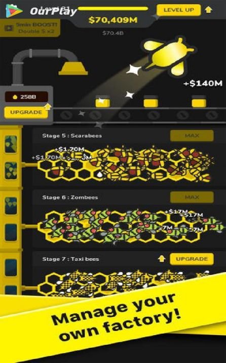 Welcome to the most exciting Bee idle game! Are you ready to manage your own mogul factory and become rich?