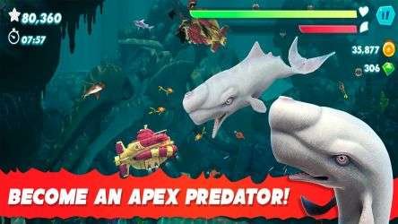 Control a hungry shark and try to survive as long as possible by eating everything in Hungry Shark Evolution! It is a very addictive Action and Arcade game developed by Future Games of London. Choose different sharks from Great White to Hammerhead! Battle enemy sharks, submarines and other creatures in the deep sea! Your target is to unlock the Great White Shark quickly - it's the largest and deadliest of the sharks in Hungry Shark Evolution. Players need to feed it up and make it become a ten-ton killing machine. Here are some tips you need to know for Hungry Shark Evolution: Before you start the game, make sure you watch the free video trailers for extra coins and gems. Find out the giant crabs in dungeon entrance gates for the big boss fights. Get yourself a baby shark. You can get one by purchasing it with coins or gems. Collect all the goodies in the Daily Reward Treasure Chest every day. Take advantage of the Gold Rush. Features: Amazing 3D graphics Unlock 12 kinds of sharks Intuitive touch Compete over 75 missions Get your sharks great items and gadgets Sync all the game data with