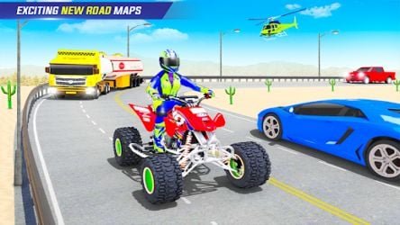 Speed up and get your real quad bike game engine roaring for the most insane light weight road racing game experience. Experience the thrill of light weight quad bike racing games and race based ATV bike games to perform ATV crazy stunts on the road in quad bike games. Race on real quad bike simulator, tricky light weight atv bike and off road ATV manic stunts in quad bike traffic racing can save your bike simulator from other road racing and light bike driving simulator in motorcycle racing. Play motorcycle driving simulator and have more fun in motorcycle games and motorcycle racing simulator. ATV bike rider four player game is risky on road courses as it is challenging two way roads with traffic coming from opposite directions. Speed up the bike TV games to go beyond the imagination and conquer the highway traffic riders in highway games. Monster Atv Quad bike rider game has nothing to do with off-road or any tough adventure quad bike game but with endless bike riding and bike racing game missions related to typical highway atv quad bike racing transportation vehicles.