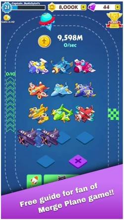 Merge Plane is a combination of placement and merging gameplay. The gameplay is easy to understand, merging into higher level planes, and managing planes to fly and earn lots of coins to produce and synthesize more planes. Players start with one route and four landing pads. The game guides the player through buying and merging planes and towing them onto routes to earn coins. As income increases, the player's level increases, unlocking more routes and aprons.