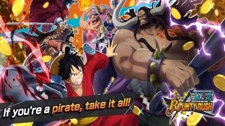 Take your pirate loot! One Piece Bounty Rush is a 3D anime battle arena treasure looting game set in the popular comic book pirate One Piece world! Join the famous Straw Hat Pirate Luffy and all your favorite characters from the King of Thieves universe in 4-on-4 real-time pvp battles, sprinting and looting berry coins for treasure to win!