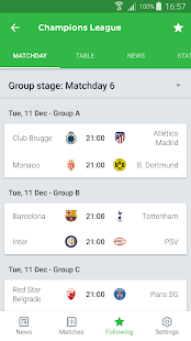 ✔On-time notifications activate push notifications for teams or matches and determine when your team enters the fray, scores a goal or is interested in a new signing.