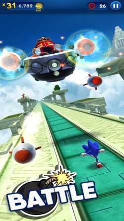 Sonic Dash offers you the best 3D environment with dashes, jumps and spins. Challenge the obstacles in this endless running game. Features: Amazing abilities- Use Sonic's power to dodge hazards. Stunning Graphics- Beautiful and detailed worlds for both tablets and phones. Multiple Characters-Choose your favorite character. Epic boss battles-Battle Dr. Eggman and Zazz. Enhanced Props- Unlock, win or buy enhanced props to help you run further. Social Connections - Invite your Facebook friends to challenge you on the leaderboards.