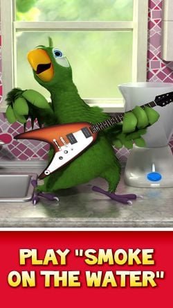 Are you ready to do some amazing guitar smashing? Pierre is now shaking Smoke on the water to help him bend the strings! The real talking parrot has lots of tricks up his sleeve and he's ready to have all the fun in the world with you! He repeats and makes up new sentences after you, he wiggles like a real guitar hero, and he dodges those tomatoes like a pro!