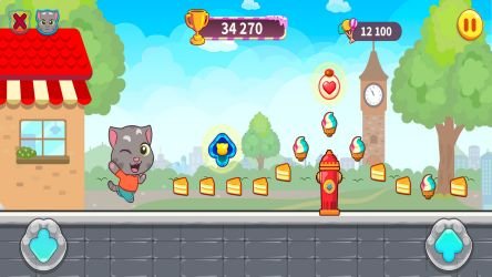 Talking Tom Cat's new candy store has been robbed! To retrieve the candy, you must keep running!