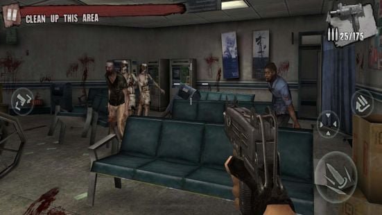 Aim and shoot. In order to kill zombies, players must aim their weapons and shoot at them. Use the crosshairs to aim your weapon, then tap the screen to fire.