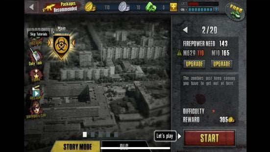 The gameplay is divided into several levels, each consisting of multiple stages. In each stage, players must defeat wave after wave of zombies while completing various objectives, such as defending a location, saving survivors, or collecting resources. The game also includes boss battles, where players must defeat a powerful zombie boss to progress.